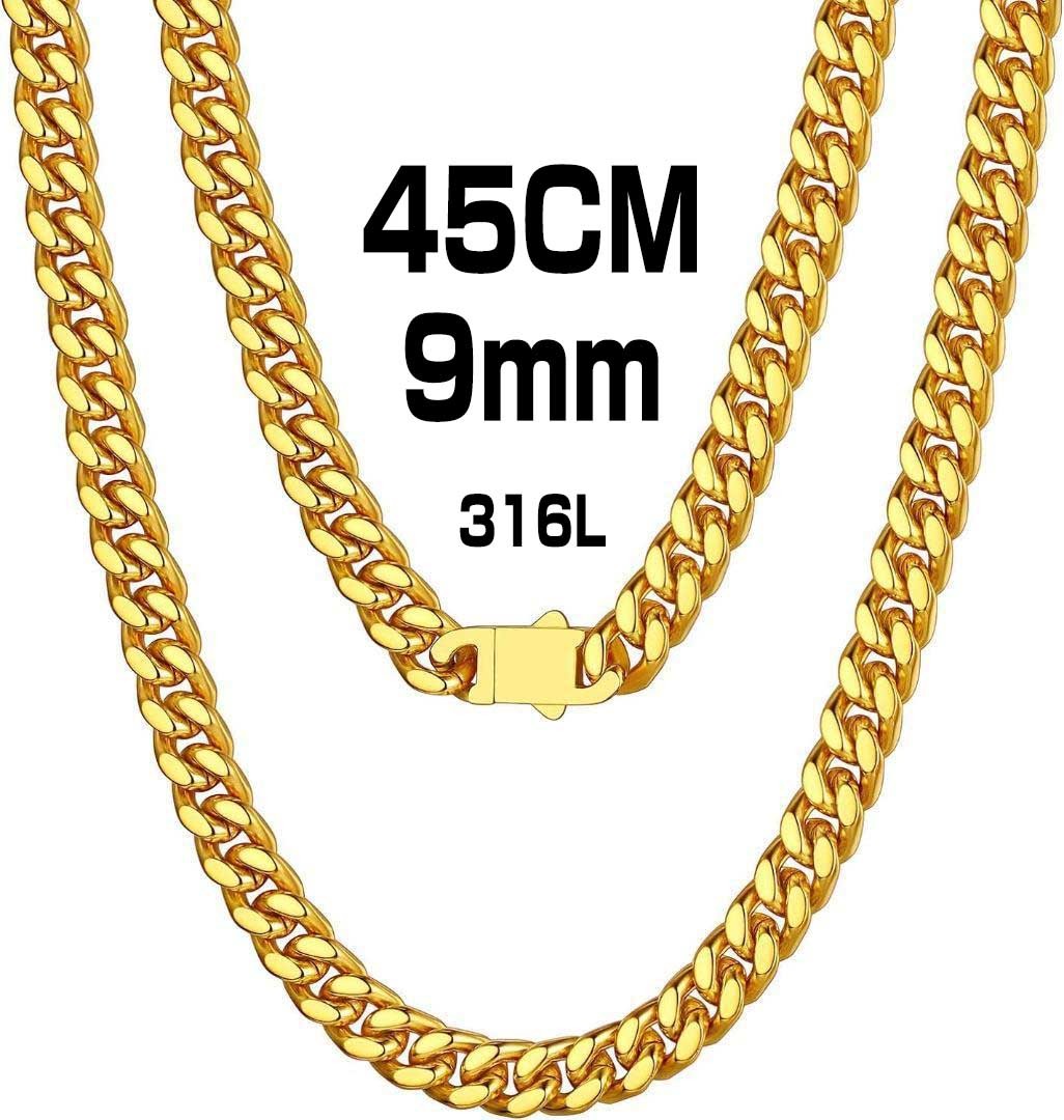 - 喜平 ネックレス チェーン 幅9mm 45cm 316Lステンレス ゴールド色