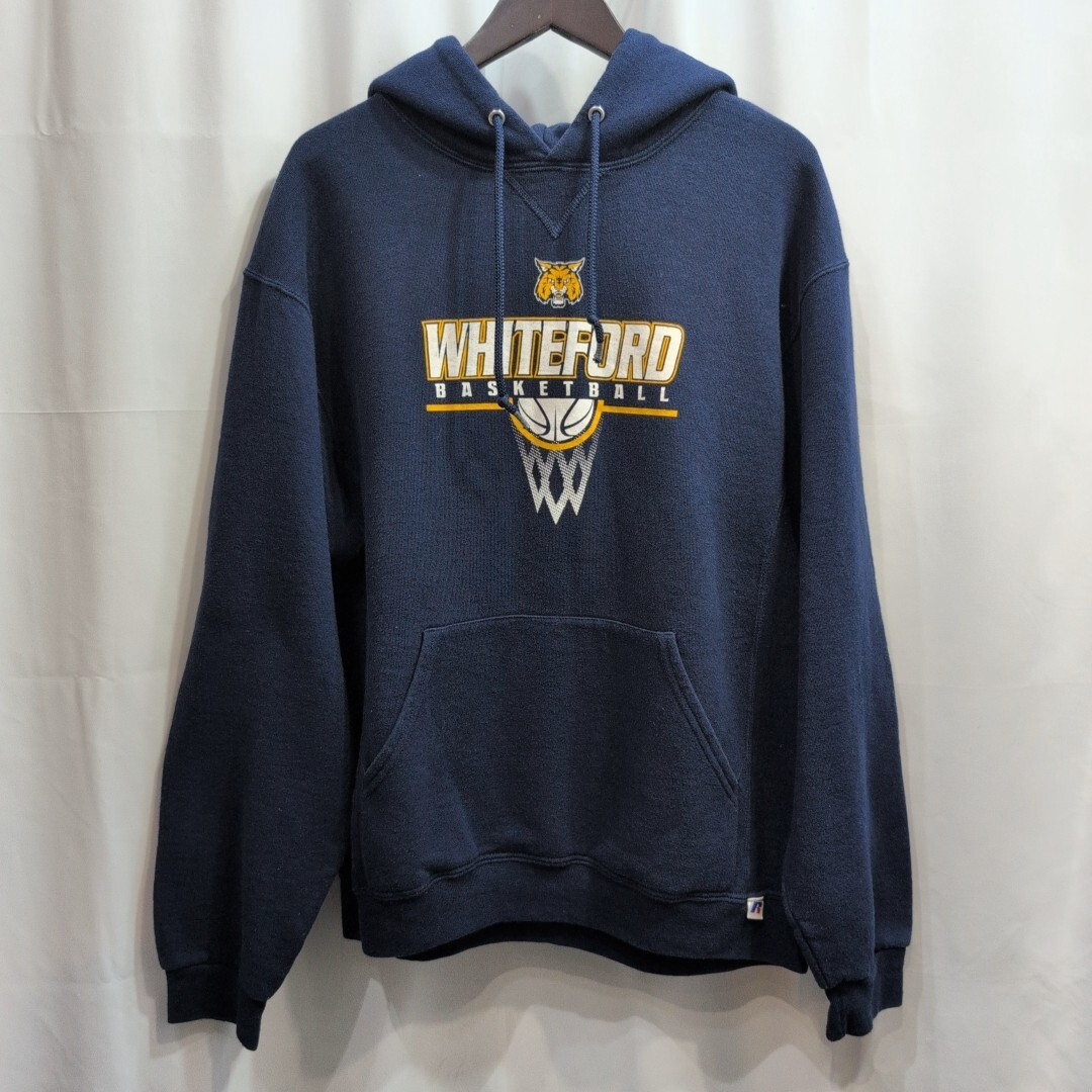 - RUSSELL ATHLETIC ラッセルアスレチック WHITE FORD BASKETBALL プリント パーカー M メンズ 長袖 フーディー ネイビー 紺 裏起毛