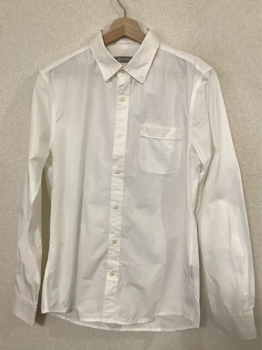 > nano universe ナノユニバース コットンシャツ 長袖シャツ ホワイト セレクト メンズ 古着 L