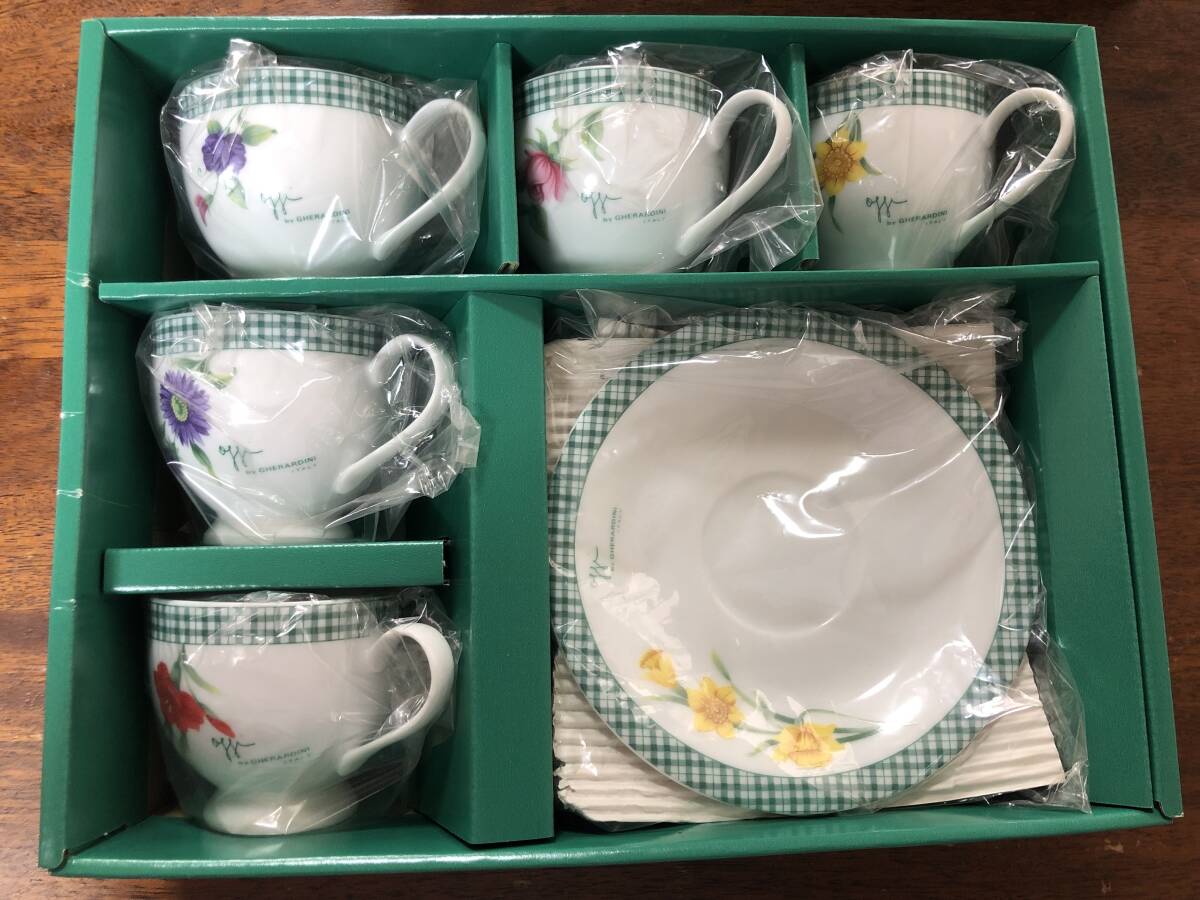- ★最終 匿名配送 未使用 長期保管品 コーヒーカップ セット♪花柄 ガリバルト・ゲラルディーニ GHERARDINI 5客セット