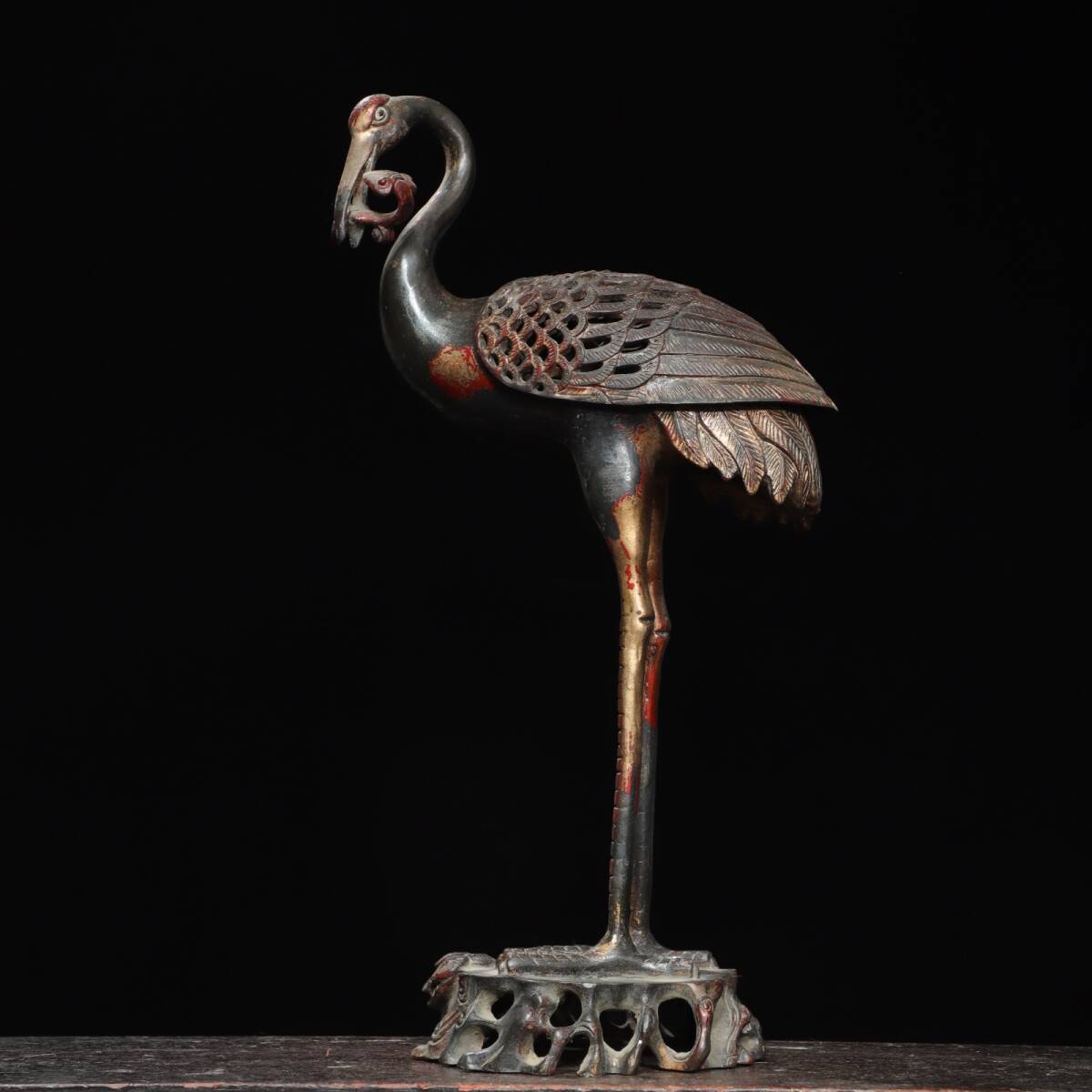 - 『館蔵珍品 銅製 拓金 仙鶴熏香炉』置物 賞物 貴重物品 収蔵品 中国古美術