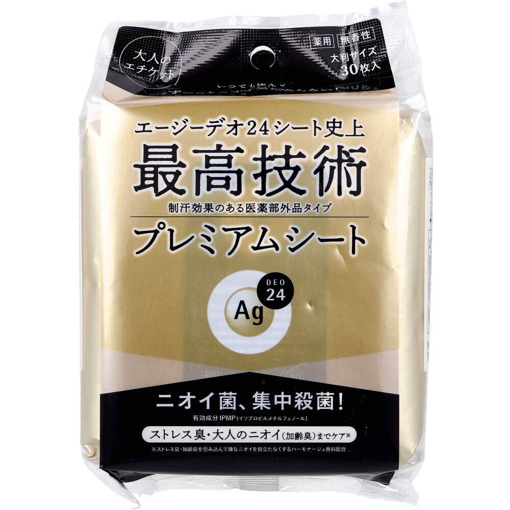 - エージーデオ24 プレミアムデオドラント シャワーシート ボディ用 無香性 30枚入