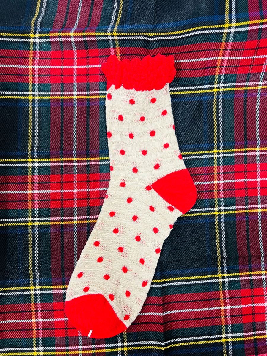 - 日本製 オーガニックコットン100%靴下 赤ドット