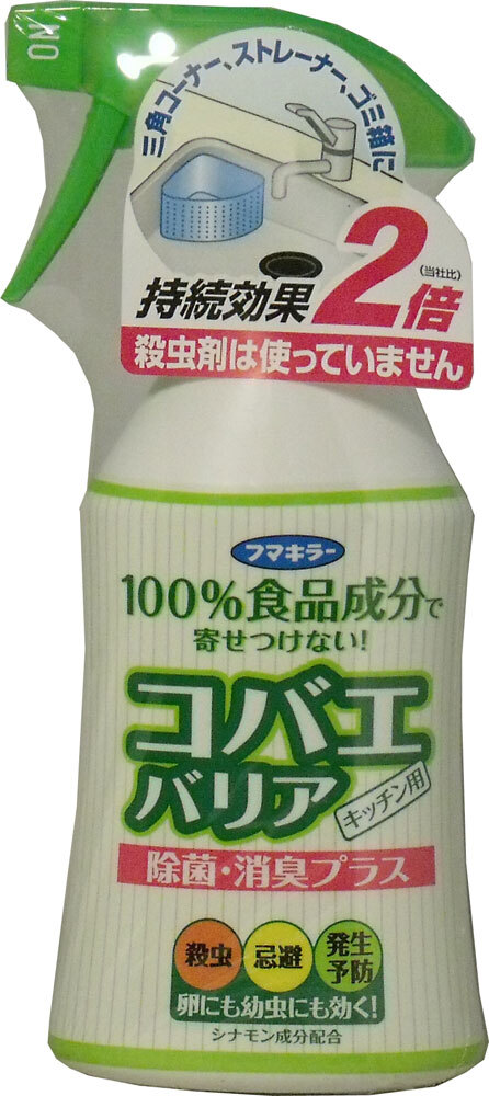 ▼▼▼▼▼▼注意事項▼▼▼▼▼▼・送料込み(送料650円が商品価格に含まれています) 一部地域では追加送料あり。・お取り寄せ商品です。弊社にて手配後、メーカー・卸業者からの直送になります。・まれにメーカー欠品、出荷遅延等が発生致します。問題発生時は別途メールにてご連絡致します。・配送方法の指定、日時指定、置き配、ギフト対応、他商品との同梱配送などは対応できません。・まとめ買いや複数購入の場合は通常より発送に時間が掛かる場合がございます・複数個口の場合、2階以上への搬入ができない場合があります。(その場合は1階での受け渡しとなります)・大型連休、お盆、年末年始などは発送をお休みさせていただく場合がございます・メーカー都合により、パッケージは予告なく変更される場合がございます・梱包用のダンボールはリサイクル品を使用させていただきます。・注文に関するご連絡(注文確定通知・発送通知など)はメールでご案内させていただきます※商品ページの内容について、少しでもご不明な点などがございましたら購入前に一度ご連絡ください▲▲▲▲▲▲注意事項▲▲▲▲▲▲〇商品説明コバエのいないキッチンに! 三角コーナー、ストレーナー、ゴミ箱に!殺虫剤は使っていないのに、持続効果は2倍!卵にも幼虫にも効く、シナモン成分配合!【適用害虫】ショウジョウバエ(コバエ)【有効成分】(E)-3-フェニルプロペナール、エタノール(発酵アルコール)、柿抽出物【注意】・飲まないでください。・用途以外に使用しないでください。・使用時は換気をよくし、噴霧を直接吸入しないでください。・目に入った時はこすらず流水で洗い流し、飲み込んだ場合は多量の水を飲ませ、医師に相談してください。・皮膚についたときは石鹸で充分に洗ってください。・身体に異常を感じた場合は多量の水を飲ませ、医師に相談してください。・シミ・変色の原因となるので、水性ワックス・ペンキ・ニスなどの塗装面、アクリル製やスチロール製のプラスチックなどに使用しないでください。・飲食物、食器、飼料、鑑賞魚、小鳥などのペット類、植物にかからないようにしてください。・引火の恐れがあるので、火気には充分注意してください。・ガス警報器が作動することがあるので注意してください。〇商品仕様個装サイズ:91/195/50mm個装重量:約236g内容量:200mL【ケース入数 12】【発売元:フマキラー株式会社】(出典:フマキラー)