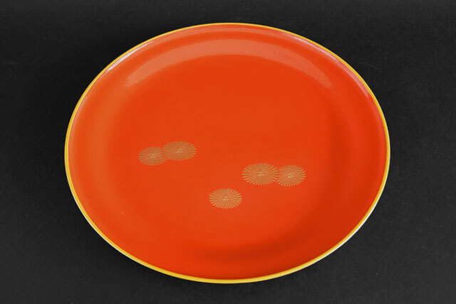 - 茶道具 川端近左 作 唐松蒔絵 内朱 青海盆