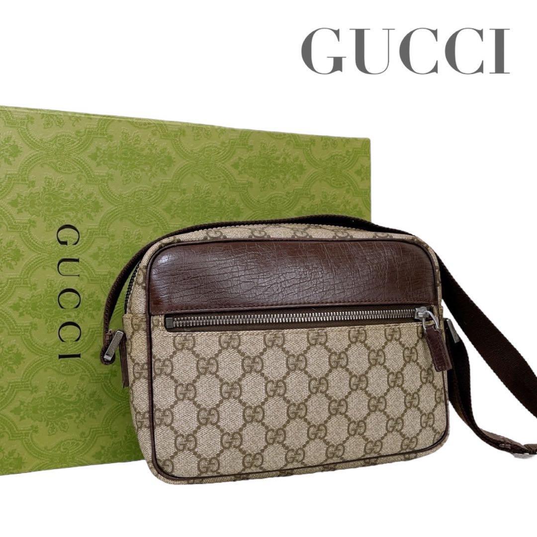 - グッチ GGスプリーム PVC × レザー ショルダーバッグ ブラウン 4554