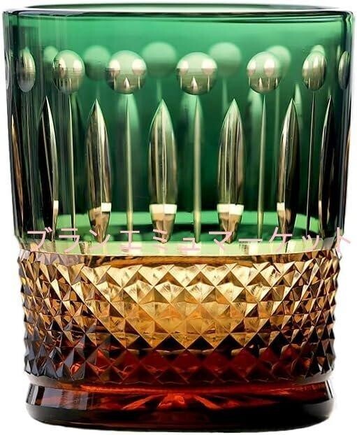 - ロックグラス 切子 260ml 手作り クリスタルガラス 高級冷酒杯 アイスウイスキー用 (黒)