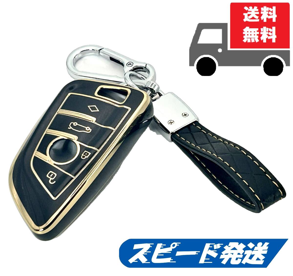 - ★送料無料★キーホルダー付き★BMW用 キーケース キーカバー★ブラック4ボタン★Aタイプ