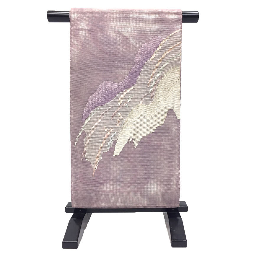 - 京やI535 夏帯 紗 単衣兼用帯 正絹 袋帯 夏袋帯 紗の袋帯 波文様 銀糸 お太鼓柄 葵色 パープル 絽紗麻などの夏着物に最適 単衣の着物にも