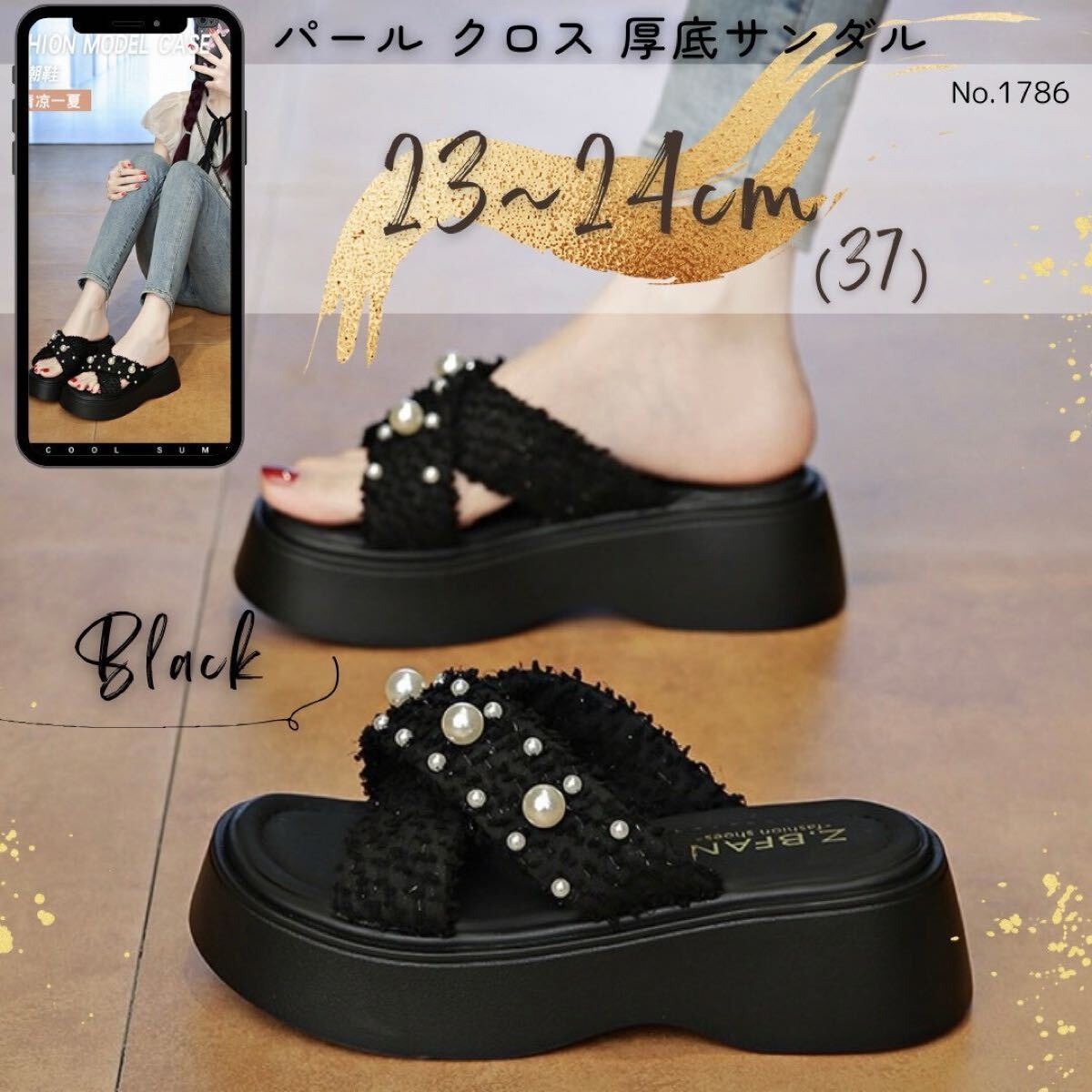 - パール クロス 厚底 サンダル ブラック 23~24㎝ フラット 韓国