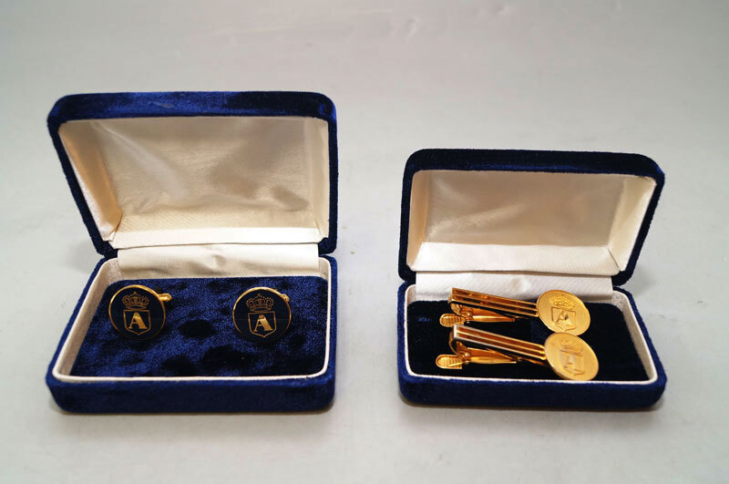 - ye78-Aquascutum アクアスキュータム カフス ネクタイピン まとめて3点 ゴールド ケース付 装飾小物 アクセサリー