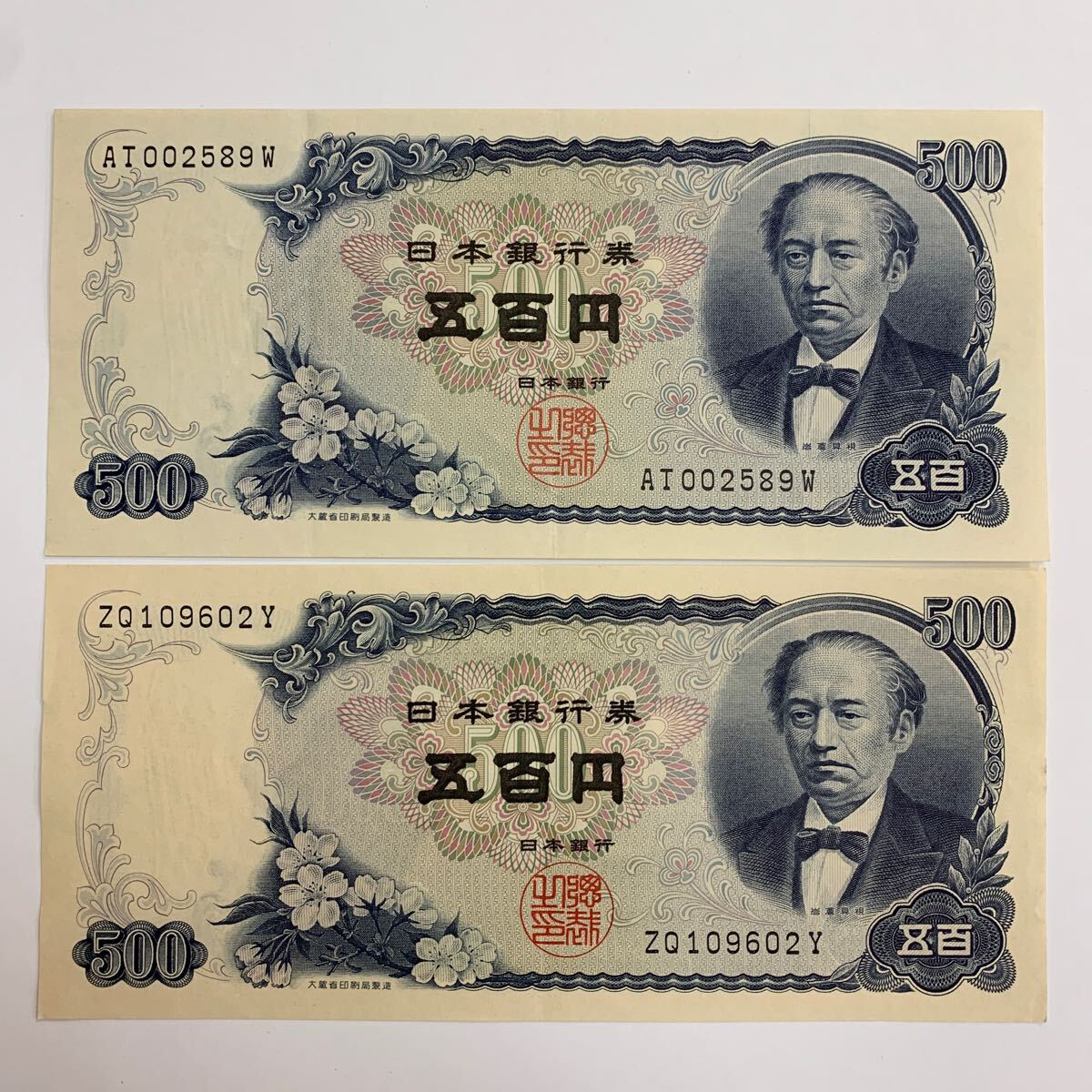 - ★旧紙幣 岩倉具視 五百円札2枚 折り目あり 日本銀行券 AT002589W ZQ109602Y