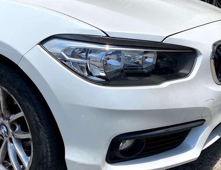 > スポーティ全開♪ BMW カーボン ルック アイライン ヘッドライト ガーニッシュ F20 118i 118d 120i M135i M140i Mスポーツ 1シリーズ 後期