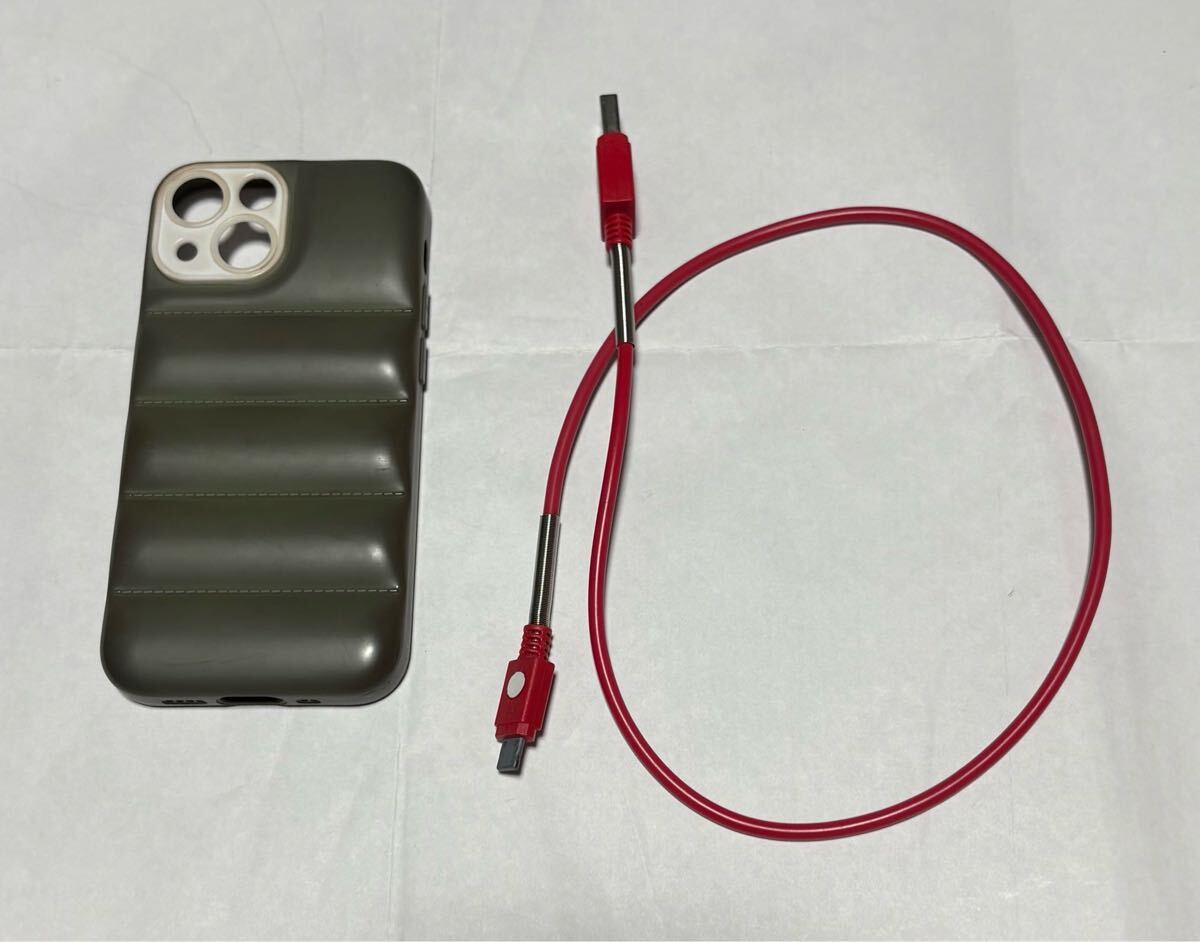 > iPhone13mini カバー ダウン 充電コード 赤 アイフォーン