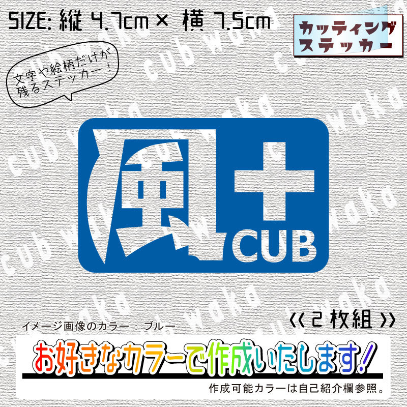 - 風プラスカブ②ステッカー2枚組 文字絵柄だけ残るカッティングステッカー・CUB・カブ・リトル・ハンター・クロス・プレス・リアボックス