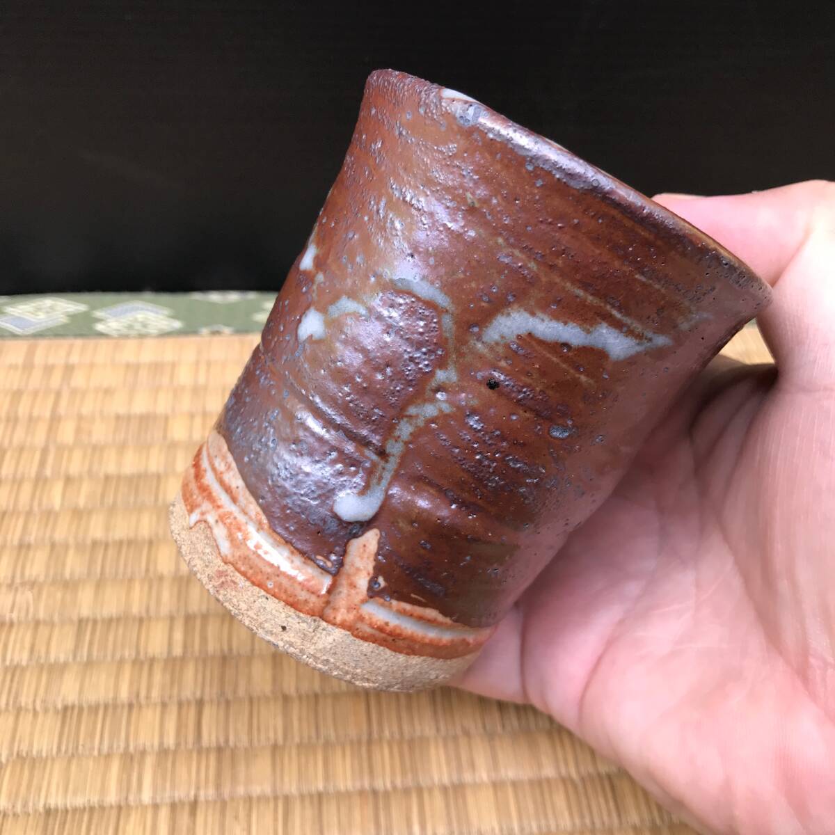 - ねずみ志野の湯呑み、ぐい呑み(ロ)魯山人銘印?猪口 小鉢 盃 杯 酒器 珍味入れ(R51007_B)