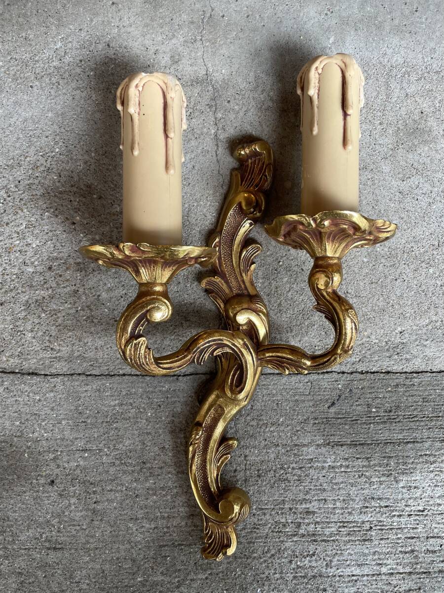 - 4. フランスアンティーク ランプ ブラケット ブロンズ 2灯 キャンドル ライト ウォール 壁 蚤の市 店舗 什器 カフェ 美容室