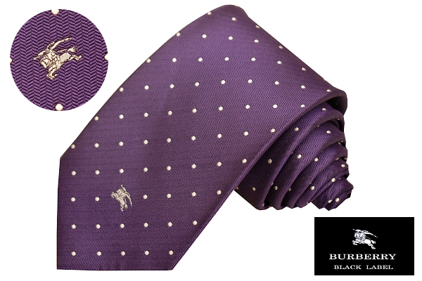 > N-2922★送料無料★超美品★BURBERRY BLACK LABEL バーバリー★正規品日本製 パープル ピンドット ホースロゴ刺繍 織り生地 シルクネクタイ