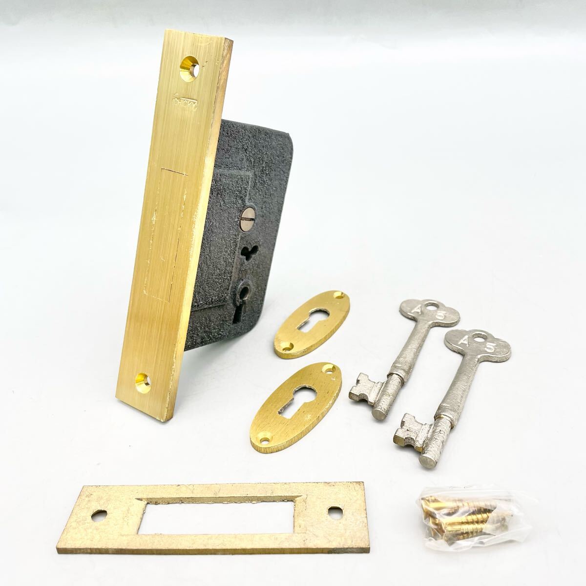- [新品 未使用品] CHICKY チッキー アンティーク 真鍮 本締錠 錠前 建具 鍵 昭和 レトロ 棒鍵 ゴールド ヴィンテージ 金物屋 在庫品 希少