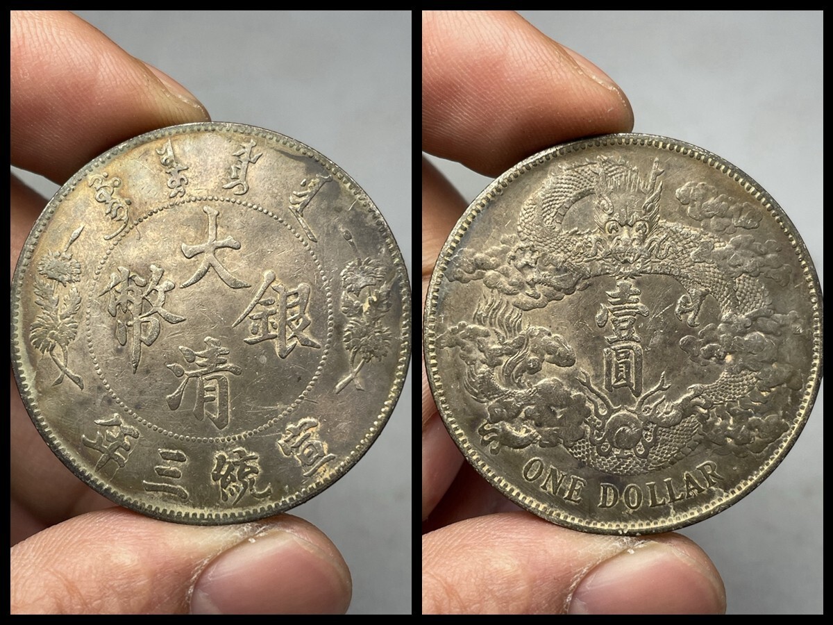 - 中国古銭 大清銀幣 宣統三年 龍戲珠紋 壹圓 銀幣 銀餅 硬貨 古賞物 旧蔵出