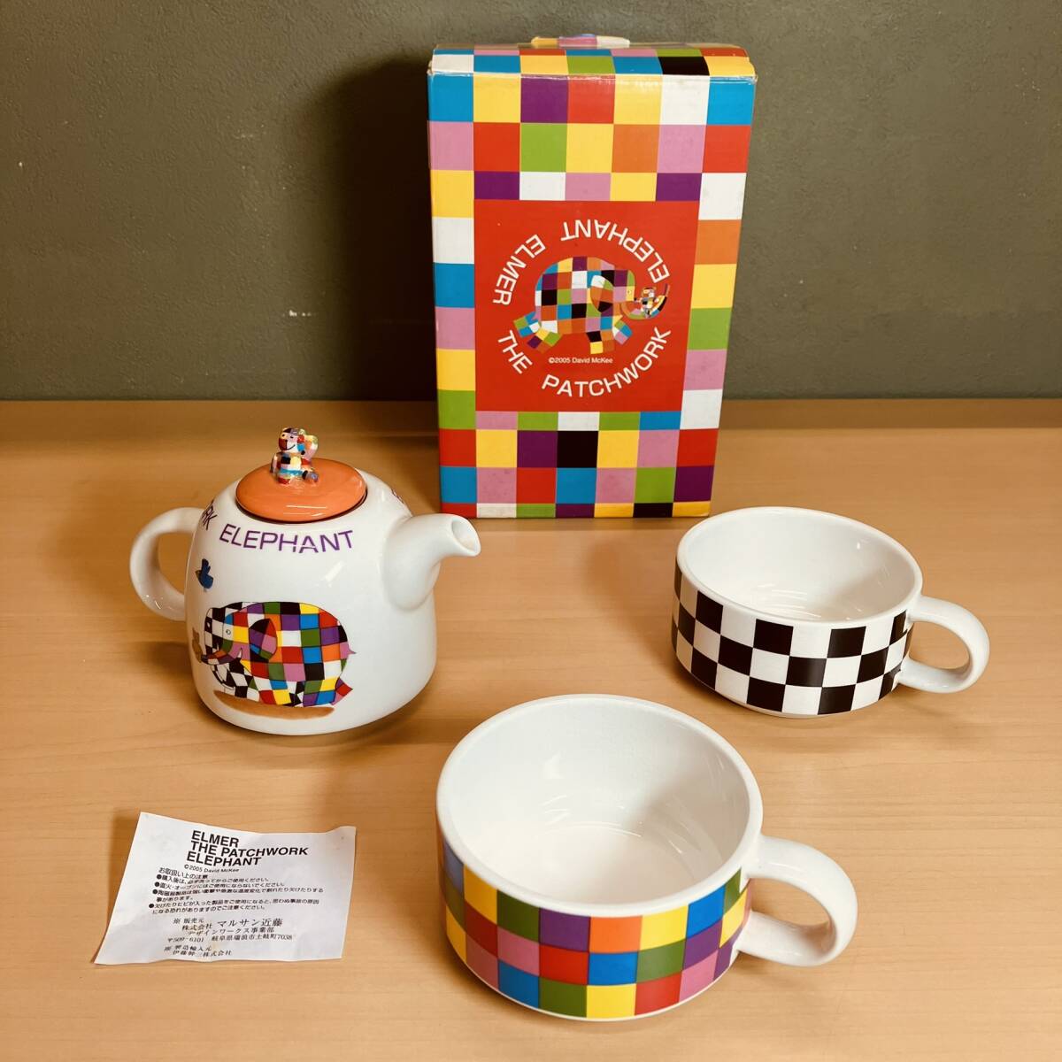 - ELMER THE PATCHWORK ELEPHANT ティーポット×1、カップ×2セット