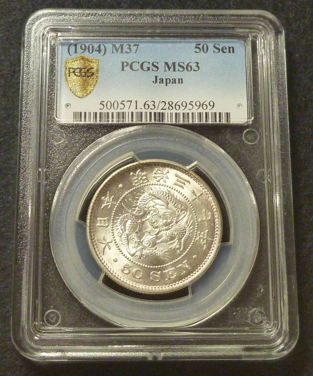 - ☆★竜50銭銀貨 明治37年 PCGS MS63★☆