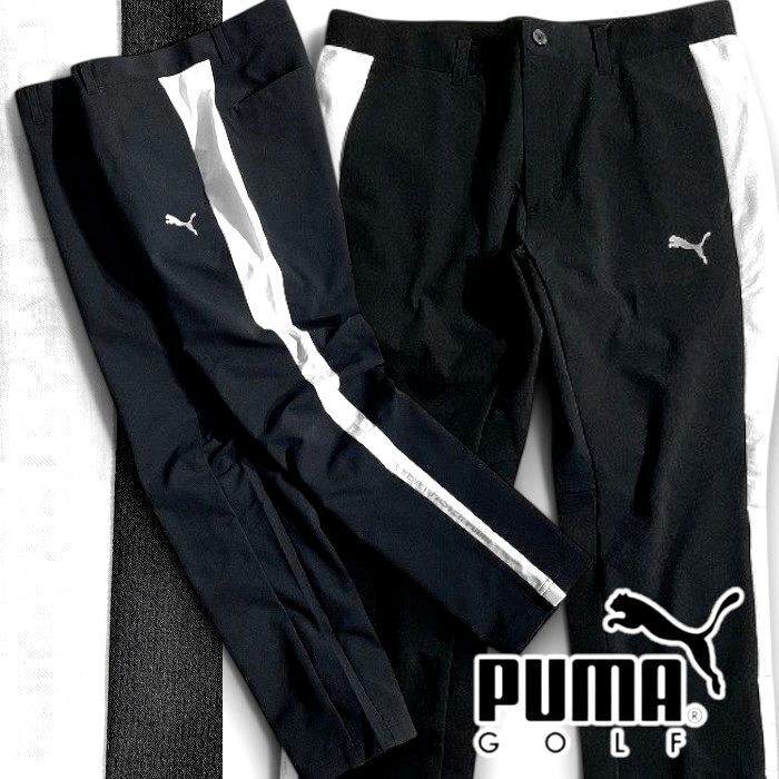 > PUMA プーマ ゴルフ 新品 定価1.3万 TEXBRID サイドライン ストレッチ テーパード ロングパンツ ゴルフウェア 627651 01 L ▲032▼50425w03