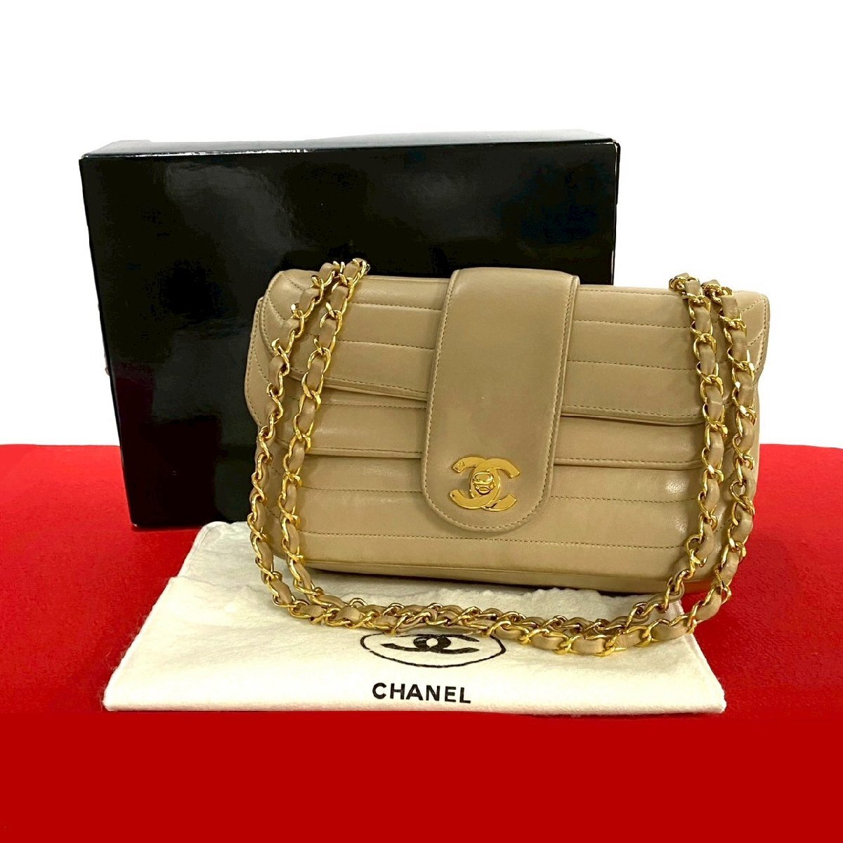 - 極 美品 箱 袋付 シール有 2番台 CHANEL シャネル Wフラップ ココマーク ラムスキン セミ ショルダーバッグ ポシェット ベージュ 81337