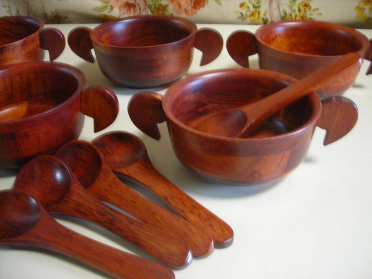 - R5 06★シチューカップ セット//両手付スープボウル スプーン付き 各5客セット 和食器 木製 両手付ボウル スープボウル