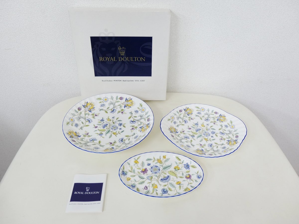 > 未使用品 MINTON ミントン ハドンホール 3種プレート (サービスボウル・オバールプレート中・オバールプレート小)