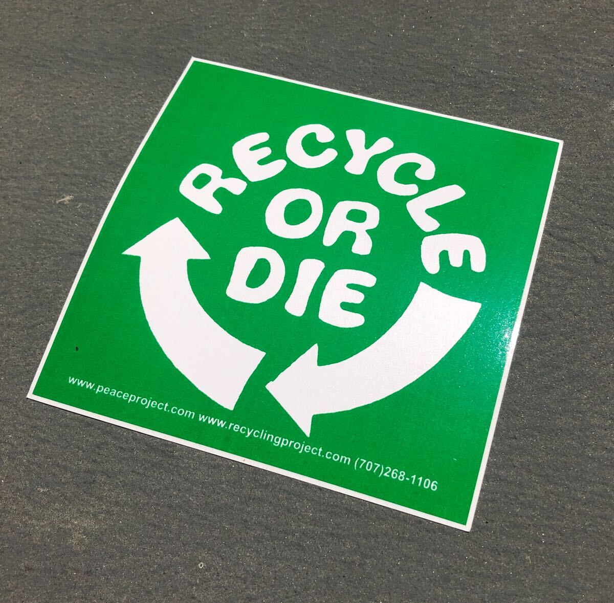 > USA バンパーステッカー RECYCLE OR DIE リサイクル アメリカン雑貨 平和 ミニトラック ムーンアイズ 北米 jdm mooneyes 空冷VW VW BUS