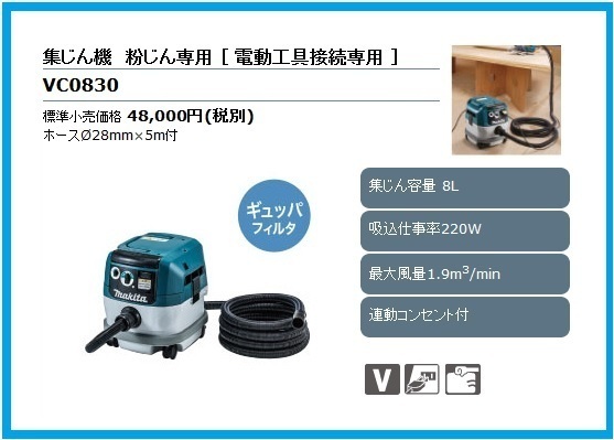 - 【限定】マキタ 粉じん専用集塵機(集じん容量8L) VC0830 [連動コンセント付]■安心のマキタ純正/新品/未使用■