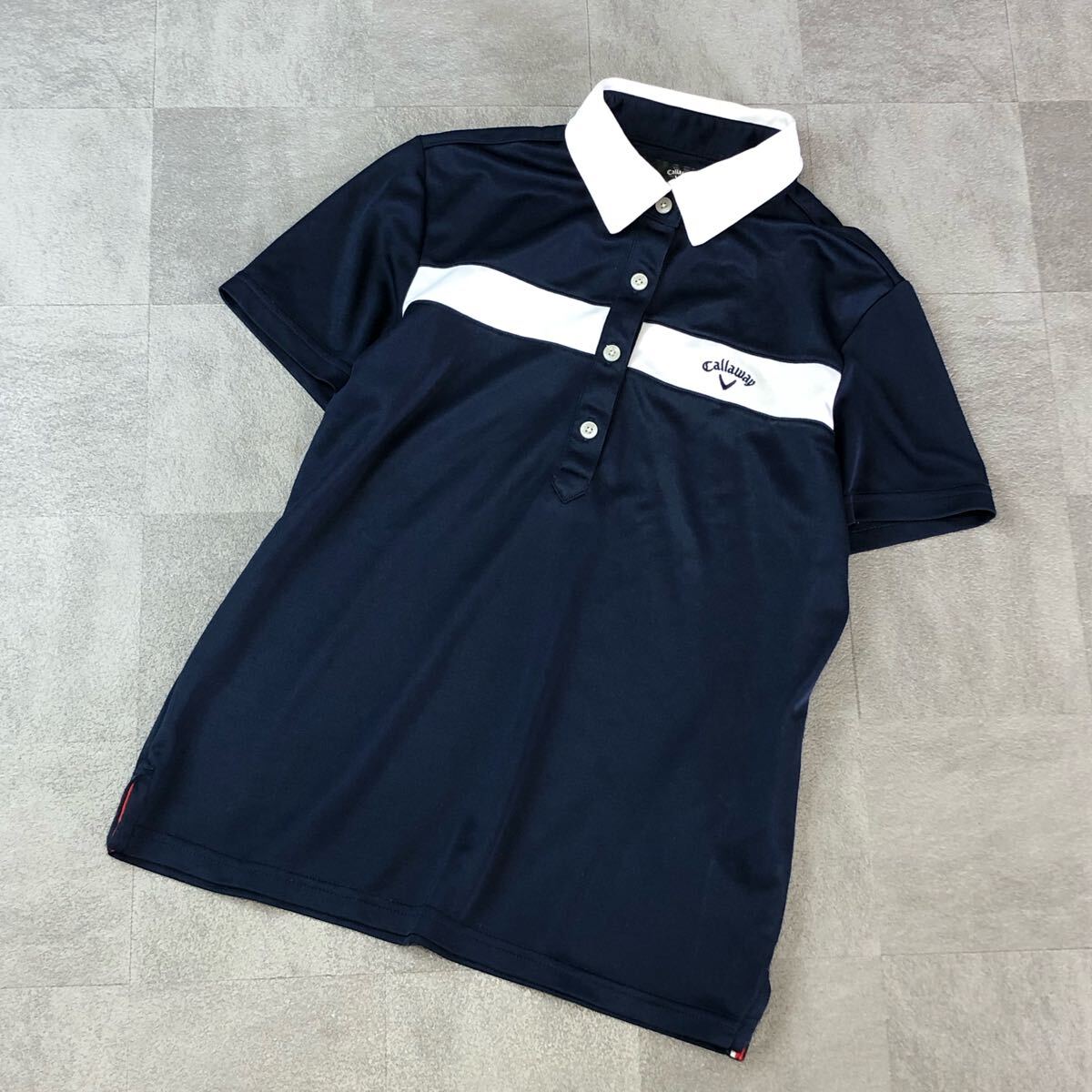 - callaway キャロウェイ X-SERIES DRY SPORT 半袖シャツ 半袖ポロシャツ トップス ゴルフウェア ネイビーホワイト レディースL 古着