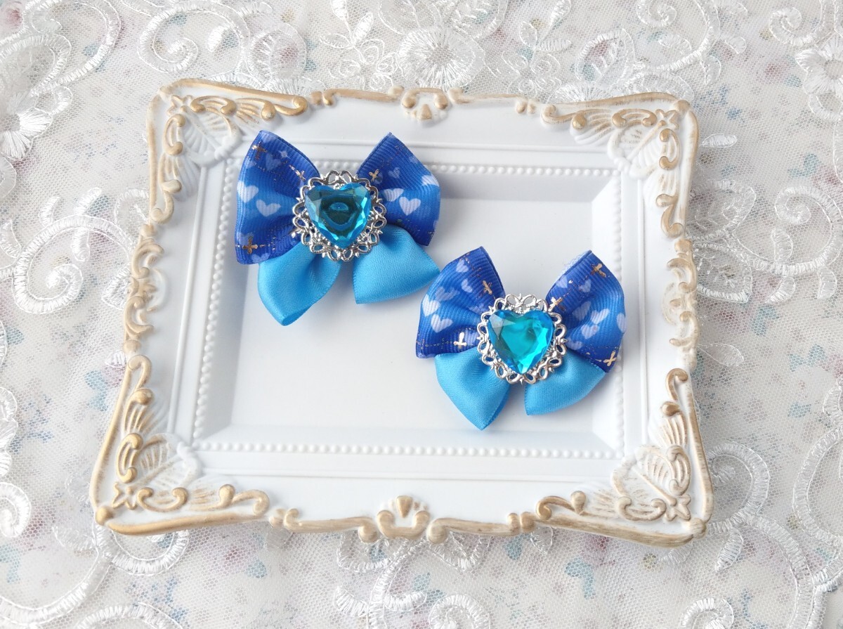 - *幼SD~SD等 1/6~1/3サイズ ドール用 ヘアクリップ ヘアアクセサリー ヘアリボン 2点セット*【Blue Heart】