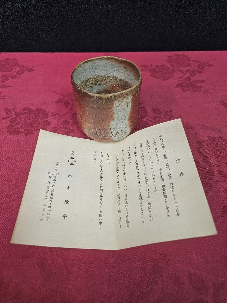 - 未使用 備前焼 作家 永末隆平 ぐいのみ コップ 湯呑み カップ 茶道具 サイズ約直径7.5cm高さ8cm ep-349ak