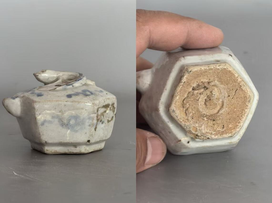 - ▼渡鶴羽▼P802朝鮮古美術 朝鮮古陶 高麗磁 古高麗 李朝時代 高麗白磁染付水滴 李朝15世紀
