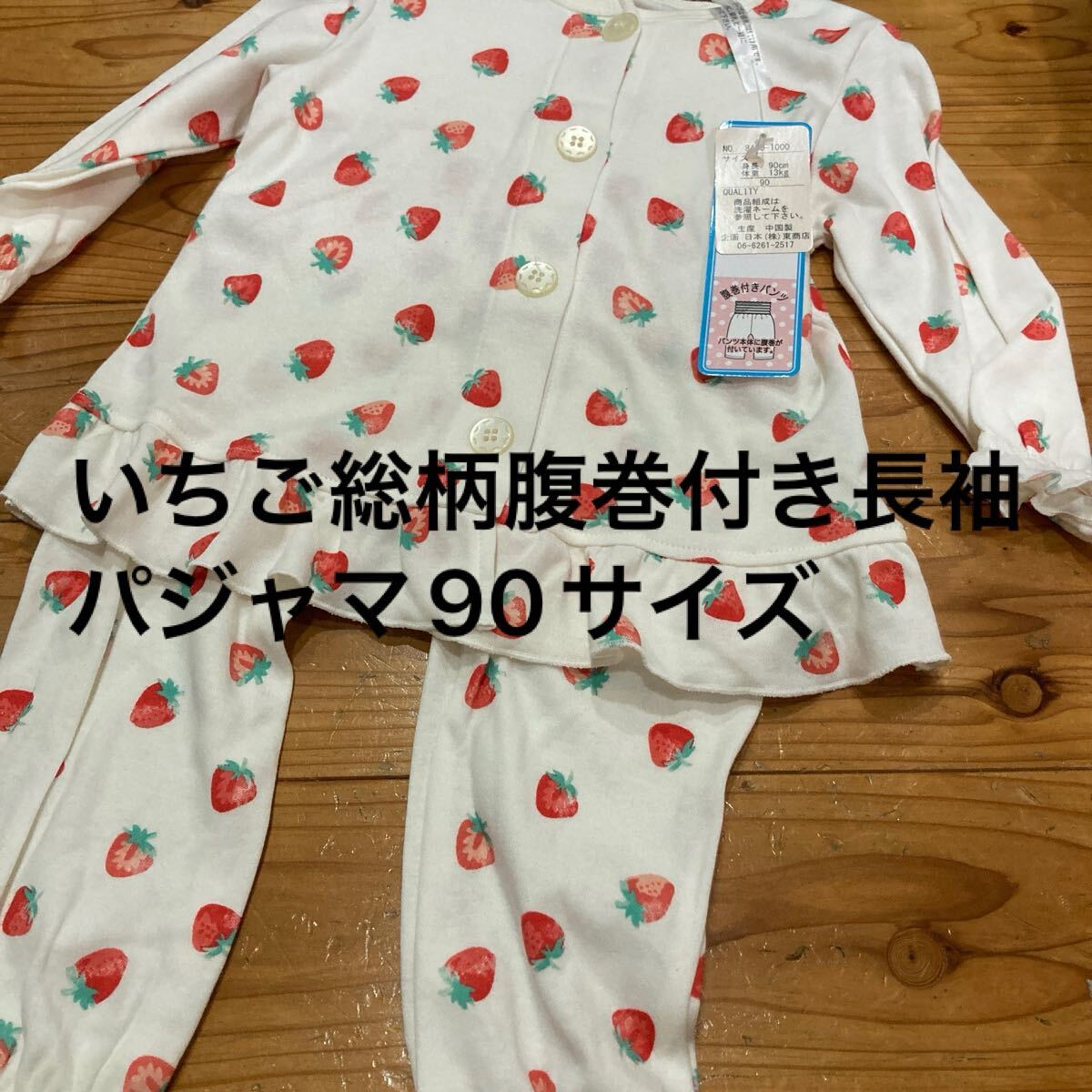 - 新品即決送料無料♪いちご総柄 腹巻付き 長袖パジャマ 90サイズ 綿100% 白