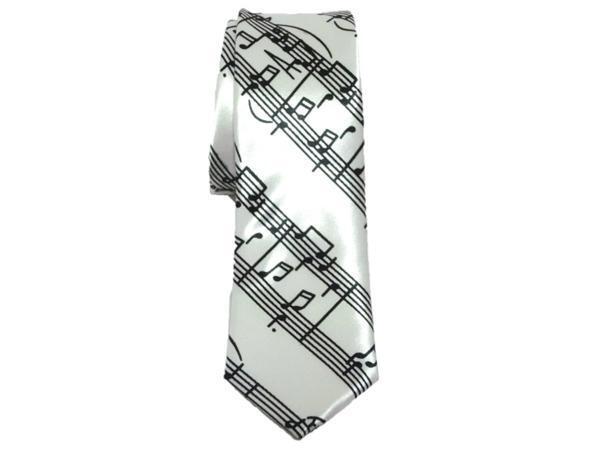 - 【普通郵便送料無料!】ナロータイ ネクタイ メンズ カジュアル 楽譜 ミュージック おしゃれな音符柄(白)