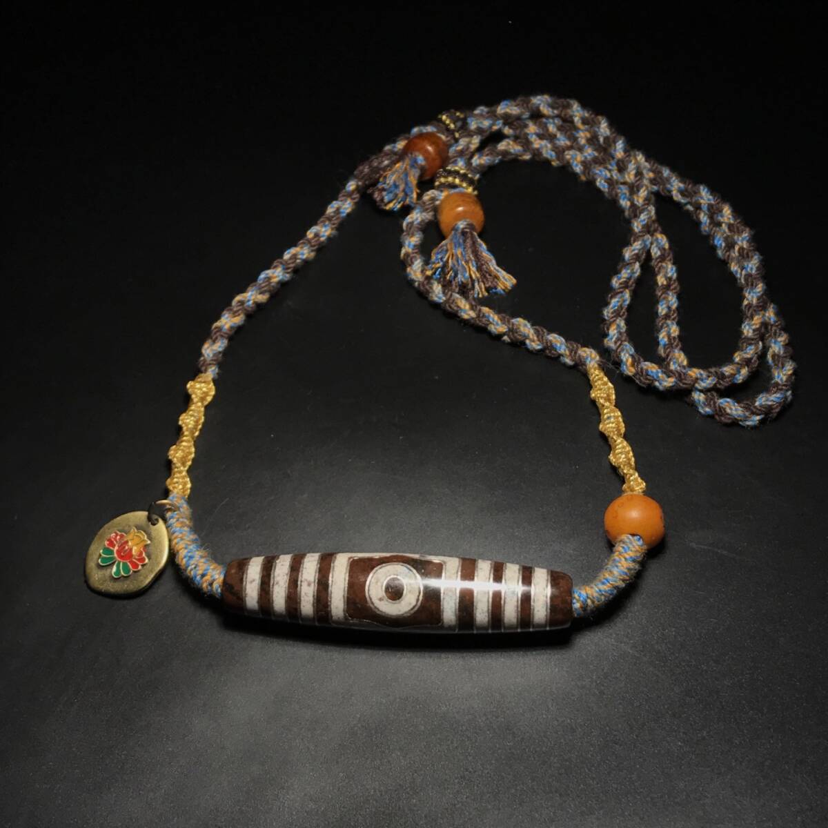 - 清 古瑪瑙彫 錯銀絲 宝盖三眼天珠 象雄天珠 高油 項鏈 箱付 置物擺件 時代物 古董品 骨董 旧家藏出 唐物 中国古玩 古美術品