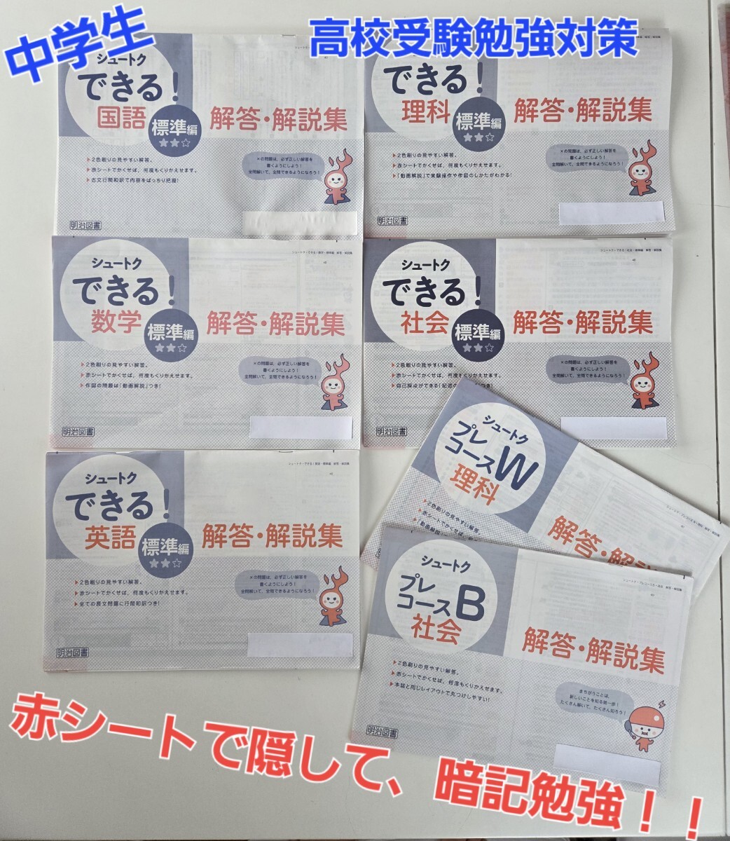 > シュートク できる! 国語 数学 英語 理科 社会 解答・解説集 ◎赤シートで隠して暗記勉強に!! 中学校 中学生 受験勉強 1年生 2年生 3年生