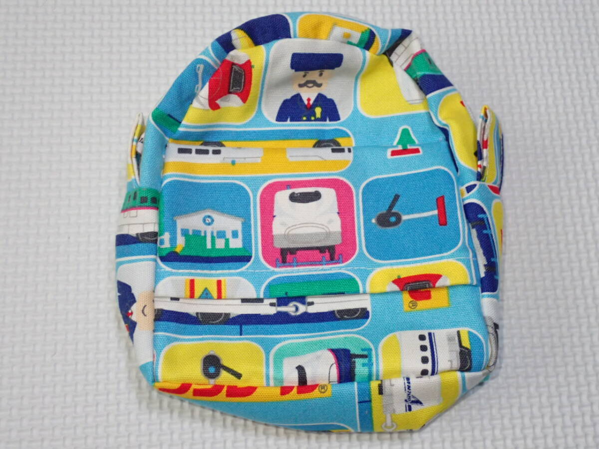 - ハンドメイド リュック型ポーチ 小物入れ 12×14cm マチあり 電車