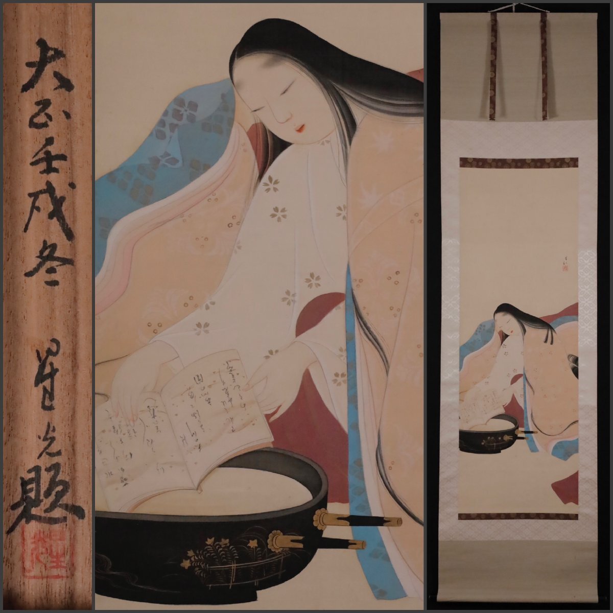 - 【模写】吉】12420 板倉星光 草紙洗小町図 共箱 菊池契月師事 能画 能楽 美人図 大和絵 風俗画 物語絵 茶掛け 茶道具 掛軸 掛け軸 骨董品