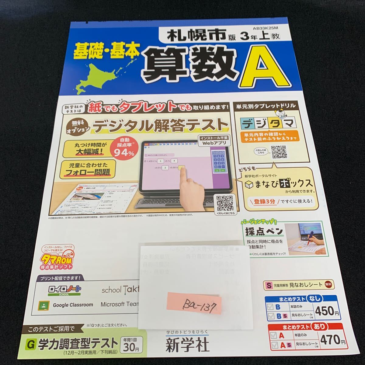 > Ba-137/3年生/上/札幌市版/新学社/小学生 国語 算数 英語 社会 理科 漢字 家庭科 テキスト テスト用紙 教材 文章問題 計算/L7/705027