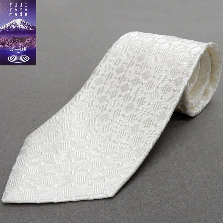 - ふじやま織 フォーマルタイ シルク100% 白 ネクタイ 結婚式 チェック 大剣幅8.5cm メール便OK fj-08wh