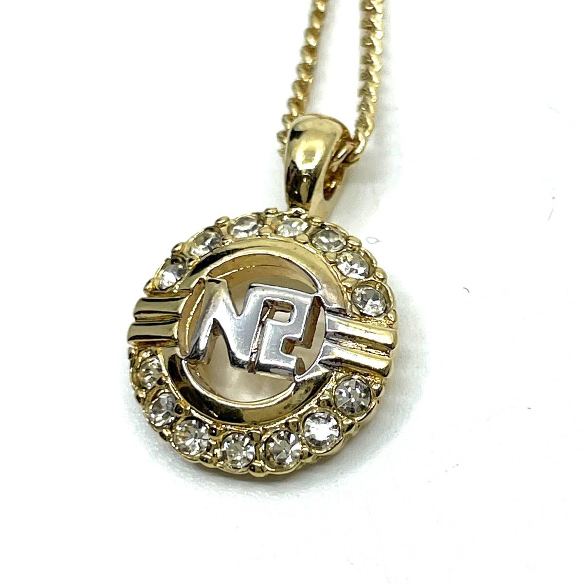 - NINA RICCI ニナリッチ ネックレス サークル ラウンド NRロゴ ゴールド×シルバー コンビ ラインストーン 石 エレガント ラグジュアリー