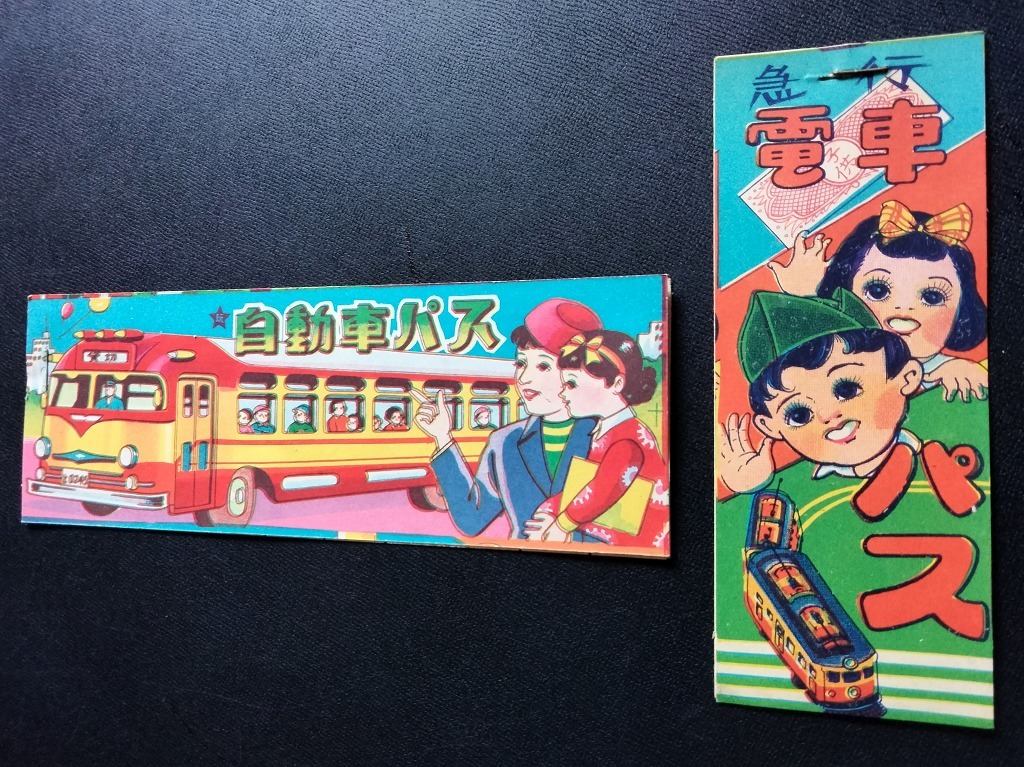 > たのしい こども 電車パス 自動車パス 2セット 未使用 当時品 !! ☆ バス 都電 電車ごっこ おでかけキップ 乗車券 昭和レトロ 駄菓子屋 ②