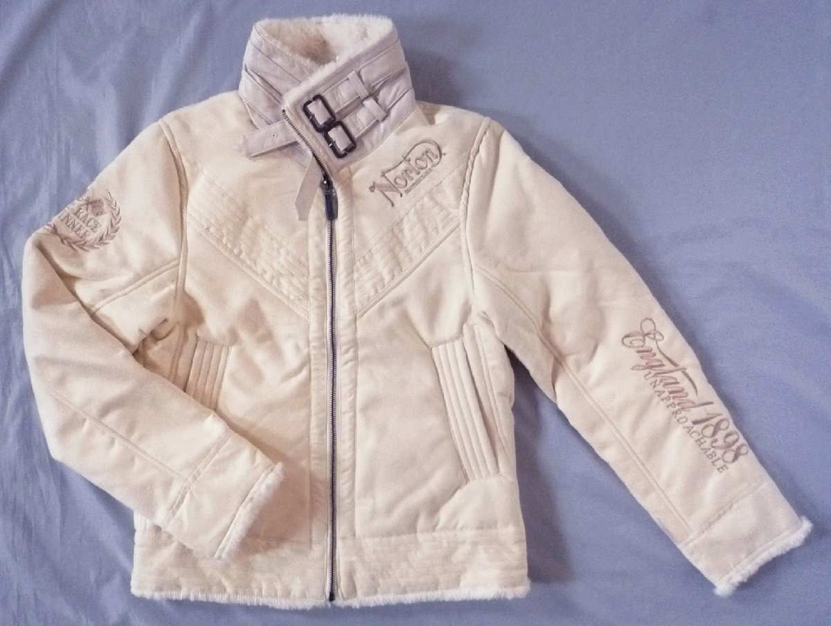 > NORTON ノートン フェイクムートンジャケット ボアジャケット 裏ボア 撥水加工 刺繍ロゴ オフホワイト 白 Lサイズ