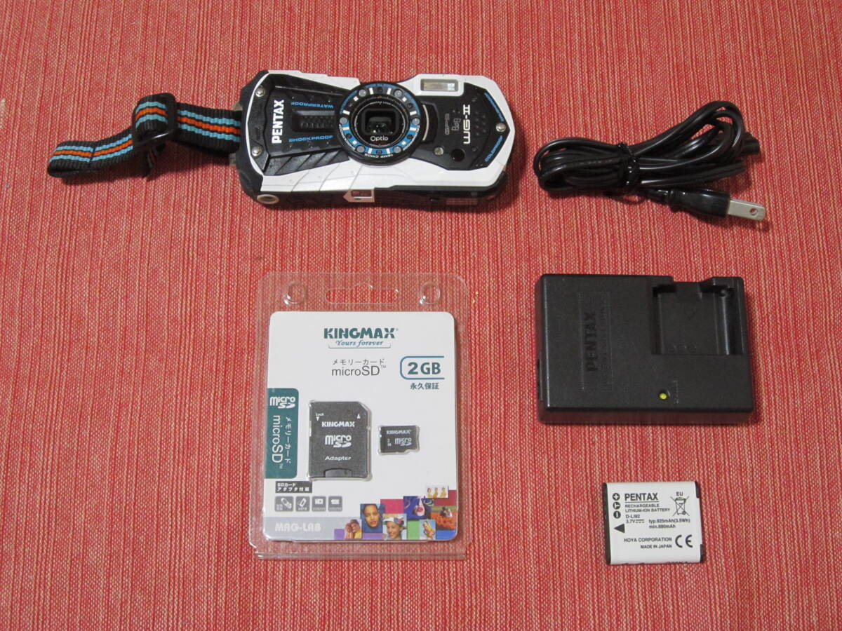 > 動作品!! PENTAX 12m防水 光学5倍ズーム デジタルカメラ GPS WG-2 ダイビング シュノーケリング 充電器 おまけSDカード わけあり