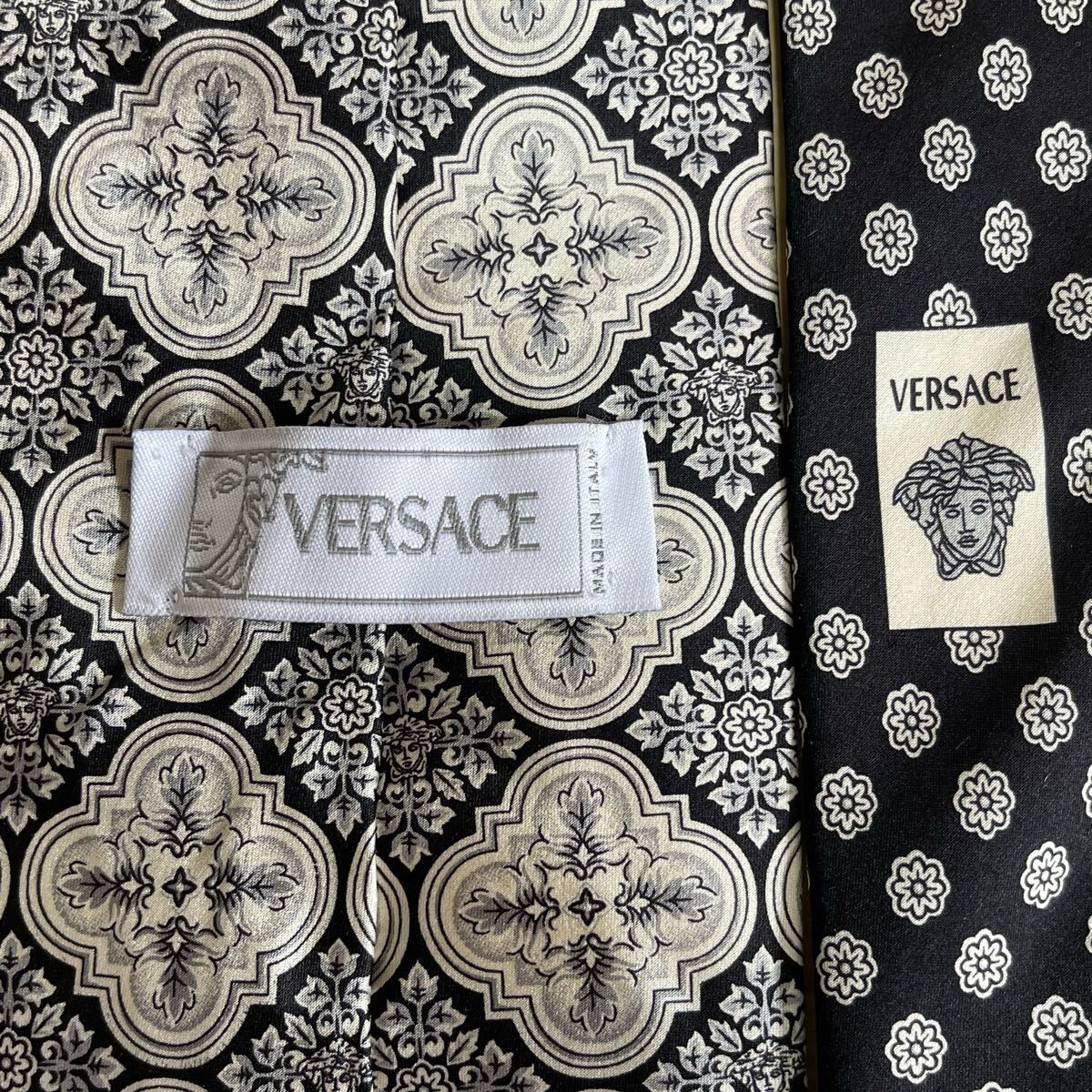 - VERSACE (ヴェルサーチェ)ヴェルサーチシルバー黒草メデューサロゴ模様ネクタイ