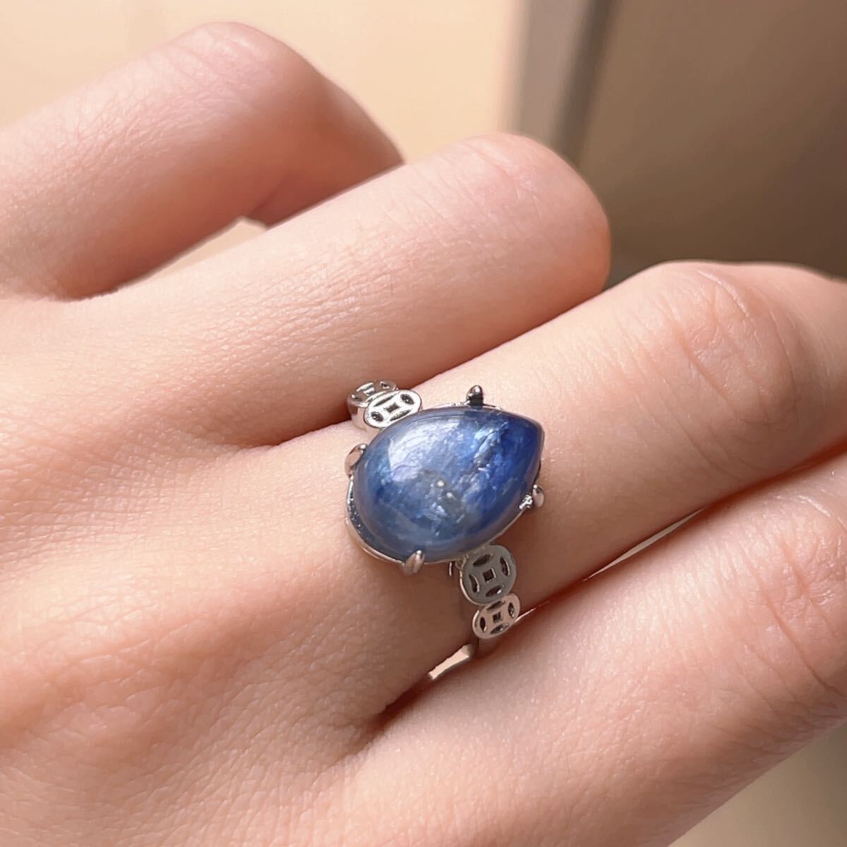 > 訳あり◇カイヤナイト◇キャッツアイ効果◇指輪◇リング◇フリーサイズ◇天然石◇パワーストーン◇巾着袋付◇プレゼントにも 030R5287